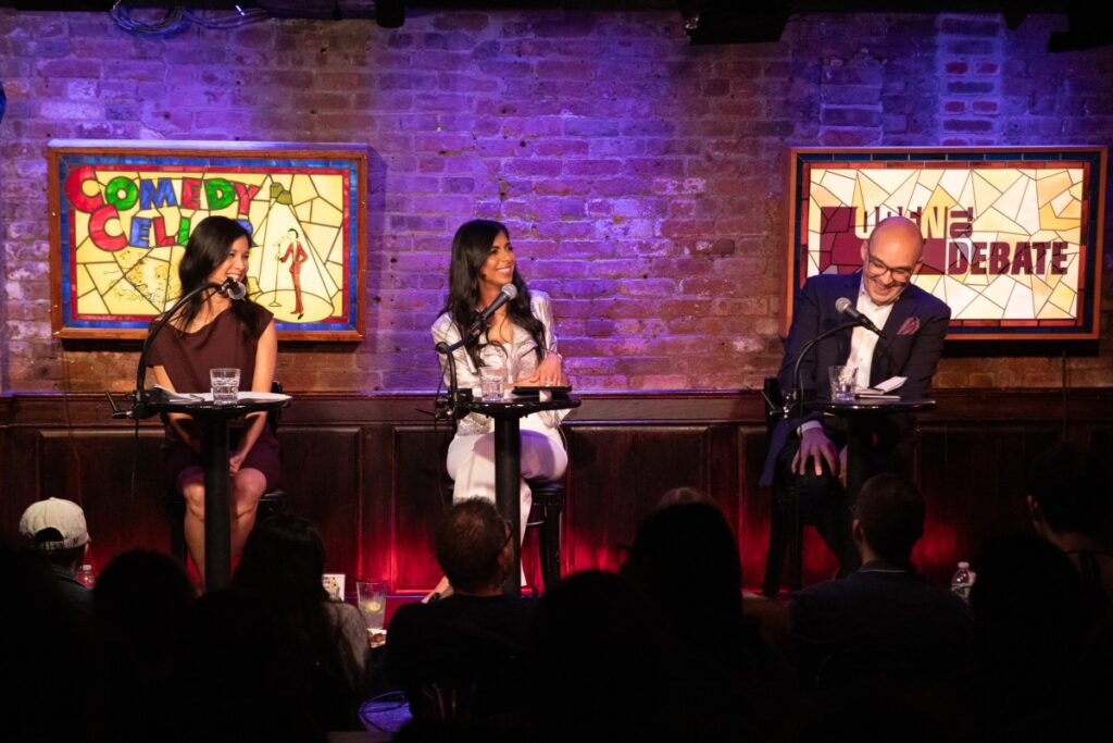 El periodista y cineasta Nayema Raza organizó la discusión. Raza anteriormente fue un productor ejecutivo en el aire del podcast «On With Kara Swisher» y actualmente es el presentador de las «preguntas tontas de Smart Girl».
