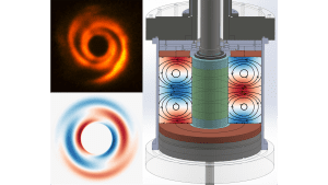 Para lograr este movimiento es necesario acoplar un campo magnético y un plasma, un fluido eléctricamente conductor. Este experimento utilizó metal líquido en lugar de plasma. En el laboratorio, hacemos girar metal líquido para crear un «disco de acreción». Luego se aplica un campo magnético para activar la resonancia magnética y transferir el momento angular de una parte del metal líquido a otra.