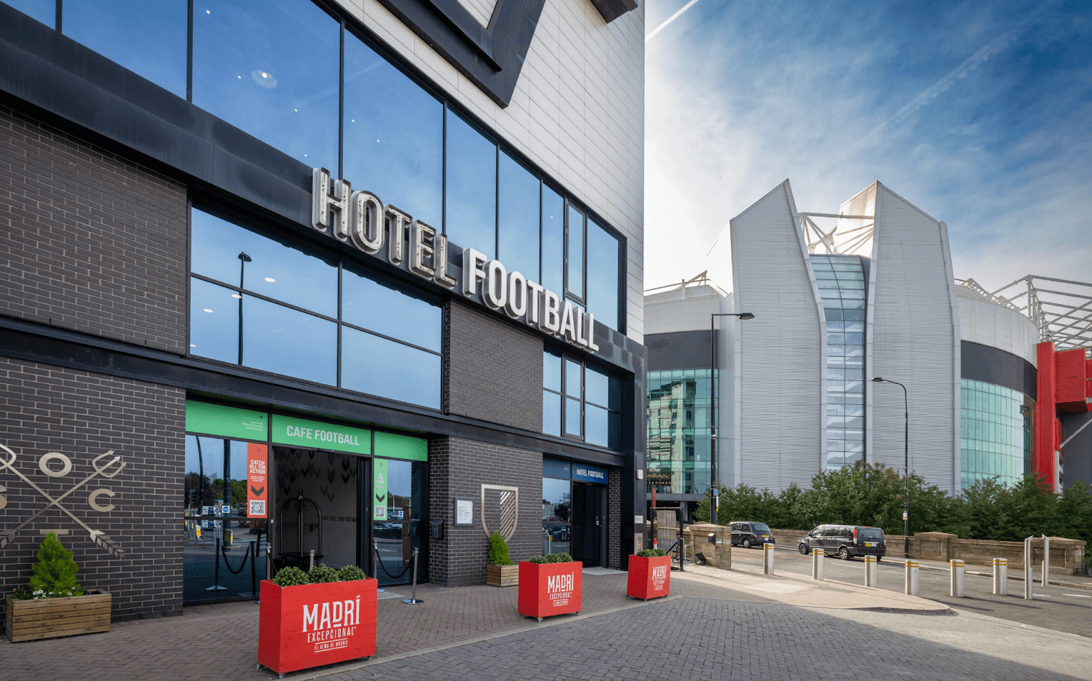 Ubicado justo al lado del Manchester United y a 10 minutos a pie de Emirates Old Trafford Cricket Ground, el fútbol del hotel se ha convertido en el entorno deseado para marcas y empresas que buscan algo sobresaliente más allá de la sala de juntas.