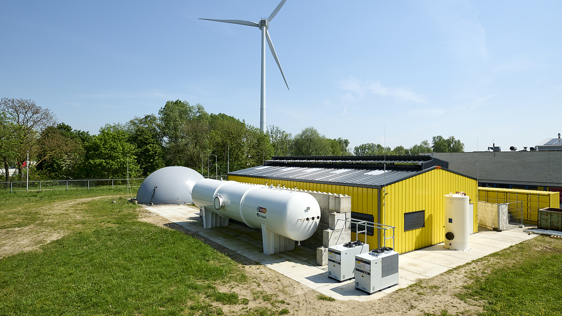 Ciertamente, estos tanques pueden incluso estar enterrados bajo tierra, y la presión atmosférica permite que los tanques de hidrógeno se coloquen sobre ellos, por lo que todo el sistema no requiere más tierra que soluciones alternativas.