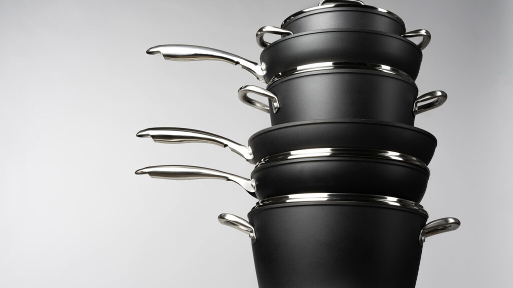 Cocinar y freír es un proceso que requiere mucha mano de obra. Los rangos de temperatura varían entre 90°C y 230°C, los alimentos pueden ser muy ácidos o alcalinos y las bases pueden ser polares (agua) o no polares (aceites). Cuando se calienta, la olla se expande con cada uso y se contrae nuevamente cuando se enfría. La olla debe ser compatible con una variedad de métodos de calentamiento, incluidos el eléctrico, el gas y la inducción. Al freír, la superficie de la sartén queda expuesta a la tensión mecánica de los utensilios de cocina. Después de su uso, las ollas suelen lavarse en el lavavajillas, exponiéndolas a productos químicos muy fuertes. Esta combinación de requisitos es un gran desafío para cualquier producto.